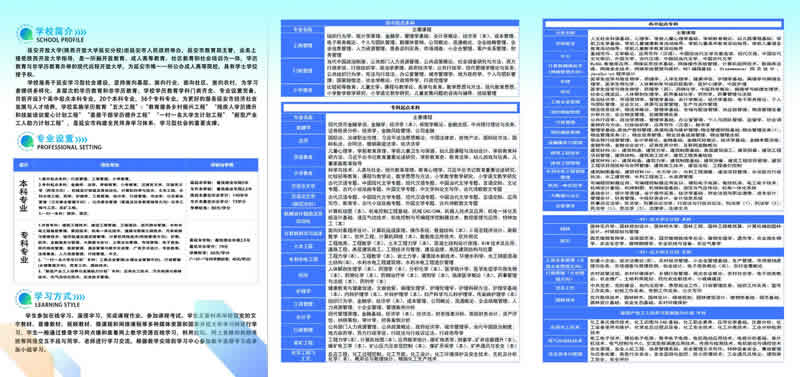 學(xué)校設(shè)置高起專、高起本、專升本、研究生(MBA)等多種學(xué)歷層次,開設(shè)管理、經(jīng)濟(jì)、教育、理工、建筑、石油、化工、醫(yī)藥、農(nóng)林等類60多個專業(yè)。